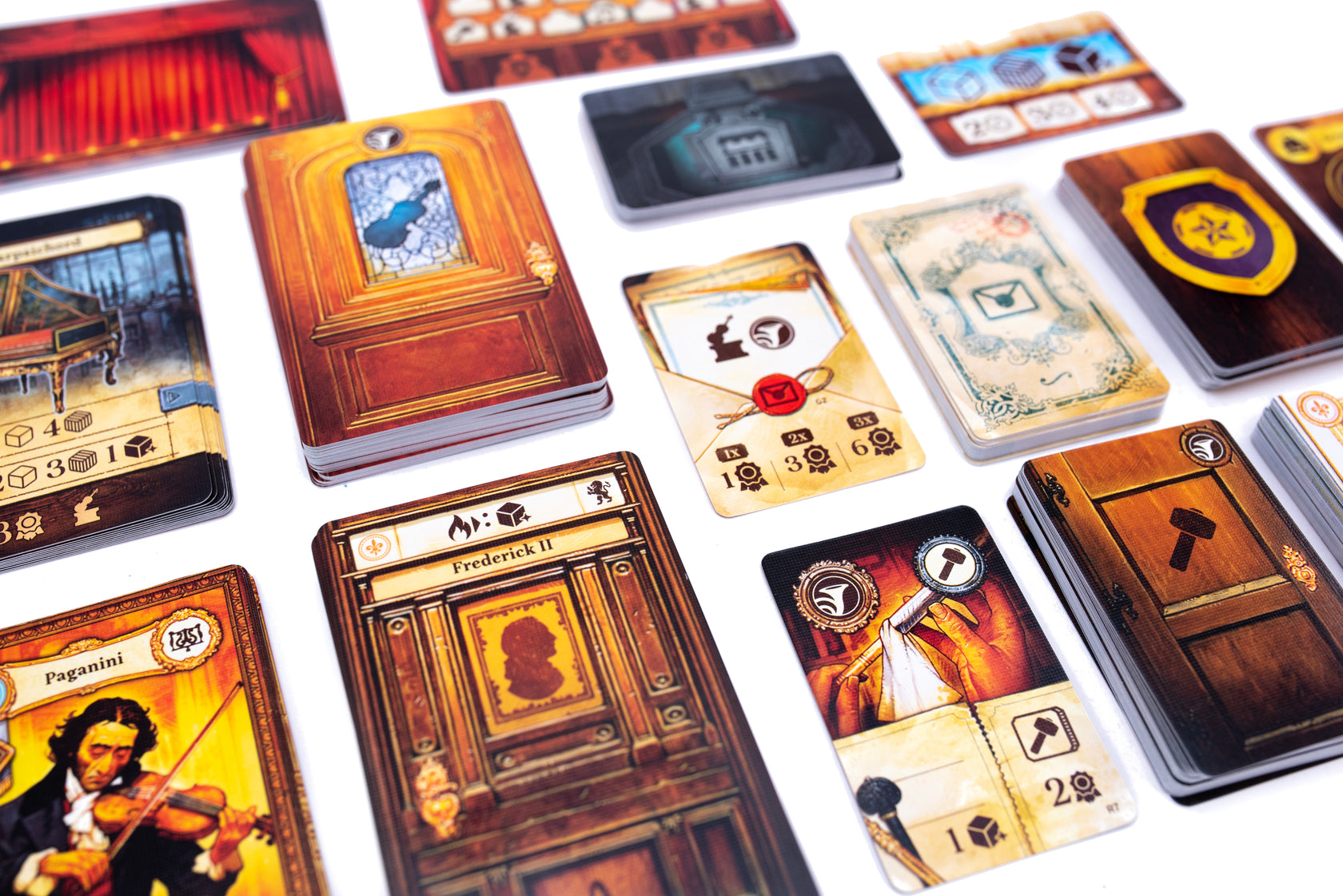 A HUGE double-sided playmat for ALL of your games! On one side, a custom illustration of the Luthier board by Vincent Dutrait, and on the other side a unique wood grain image for all of your other games. Neoprene mat measures 35” x 60” (889mm x 1524mm). Mat will have double-stitched edges and comes with a non-slip pad. Note: Due to the large size, this does not fit in the game box.